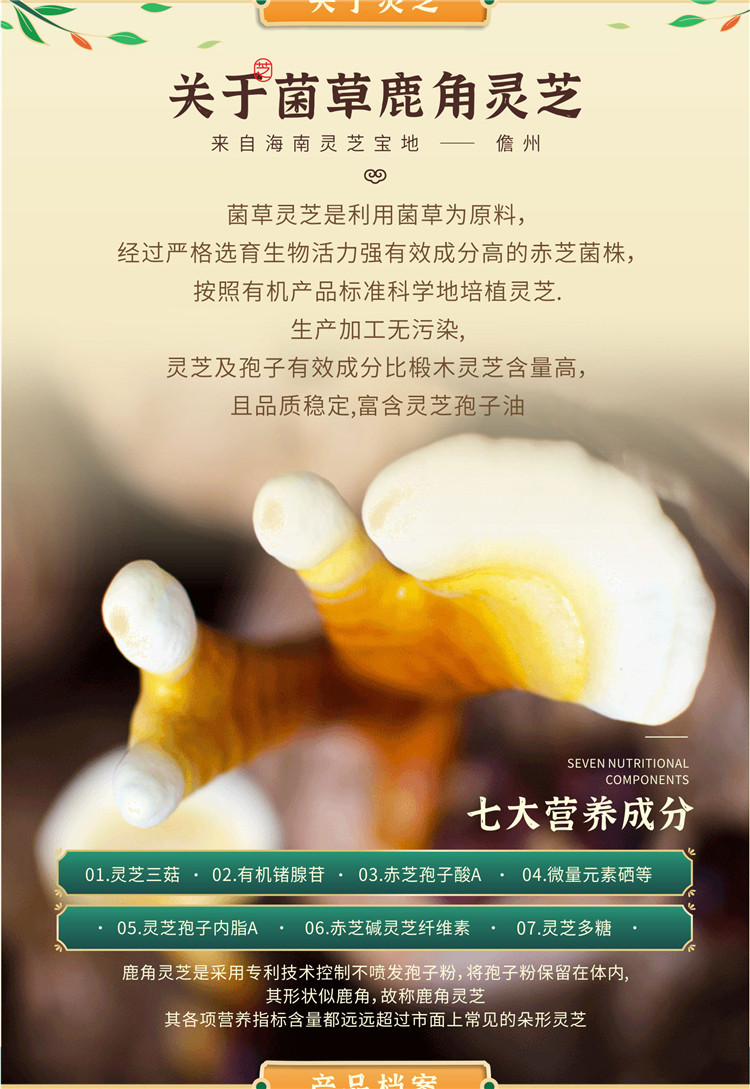 相比野生灵芝喷射孢子粉;无人管理,被虫蛀或霉菌污染;野外自由生长,容易染菌;常年风吹雨打,营养成分流失,形成木质化。而菌草鹿角灵芝中有效的物质是孢子粉,常见的野生灵芝及人工培育的伞状灵芝都会喷射孢子粉,有效成分会流失;我们的菌草鹿角灵芝在栽培过程中通过专利技术控制让其长成似鹿角状,不喷孢子粉,使有效营养成分全部留在其“身体”里面。