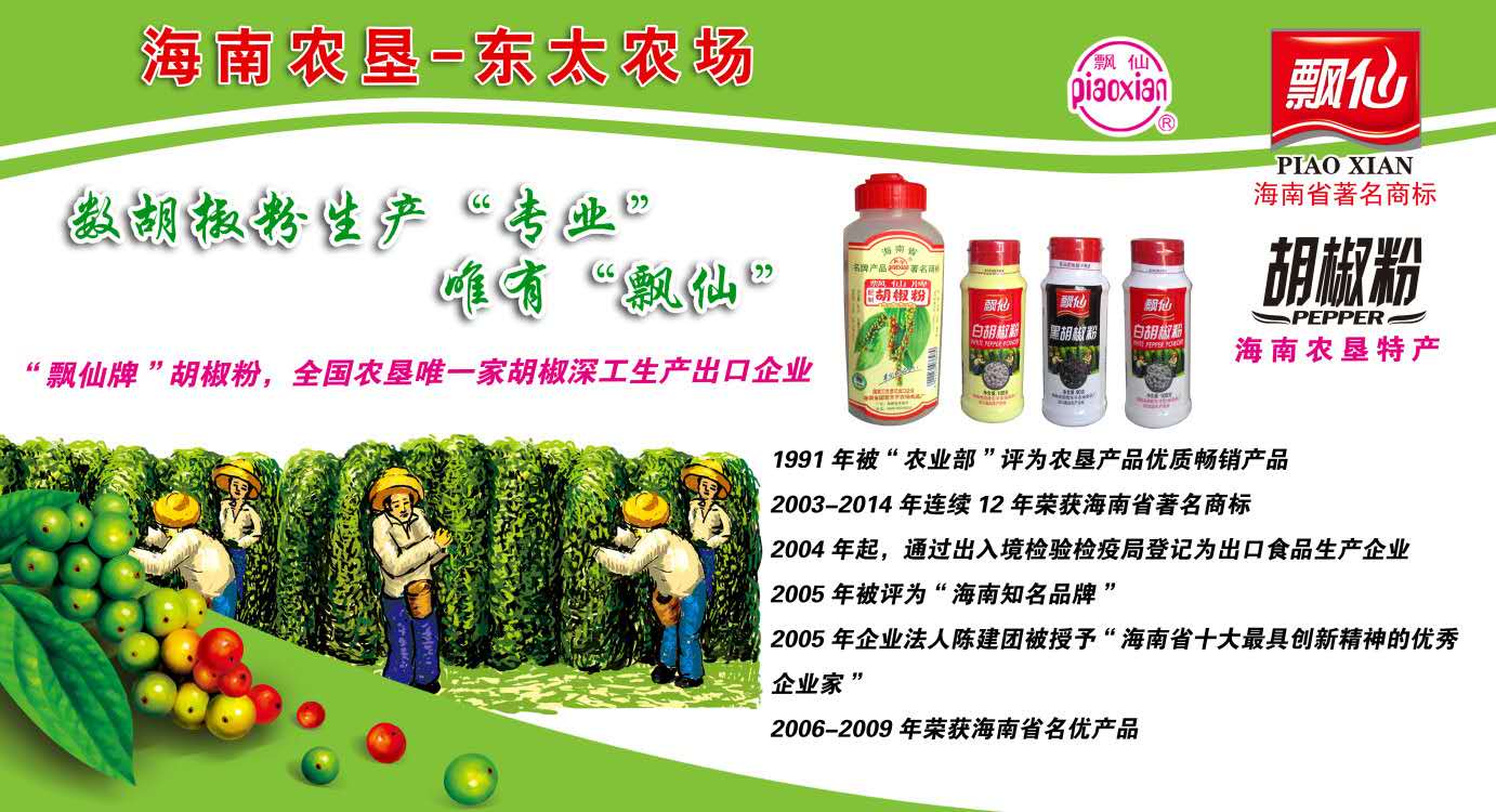 海南省国营东平农场食品厂位于风光旖旎盛产胡椒的万泉河畔,是以生产“飘仙”牌胡椒粉系列的调味食品加工企业,是全国农垦唯一的一家胡椒深加工生产出口企业。公司和食品厂签订了爱心扶贫协议书,采用投资分红和劳务报酬等形式多困难职工进行帮扶。希望借助海南农垦这个爱心扶贫的平台,打开胡椒的销路,让农户们早日脱贫致富。有需要的人士可以联系他们。