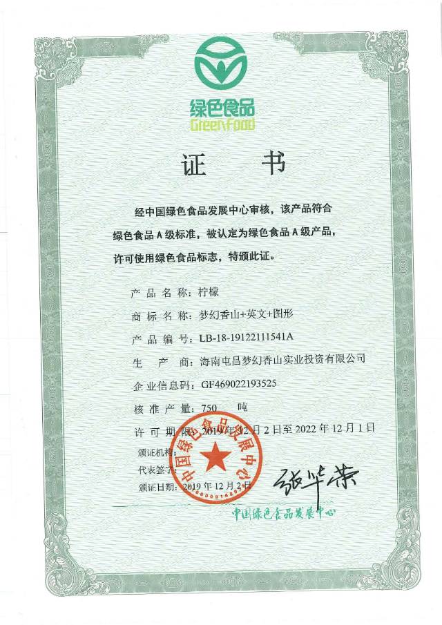 梦幻香山柠檬园位于海南屯昌,共450亩,荣获农业部 “热带作物标准化生产示范园”的称号,果园内全年播放着优雅的轻音乐,全程实施生态循环管理,利用富含锌元素的地下冷泉水灌溉,又因当地空气中负氧离子含量高,梦幻香山柠檬是名符其实的听着音乐、呼吸着高负氧离子、喝着泉水长大的富锌柠檬。公司2013年开始开荒山种植柠檬,扎根于屯昌县屯城镇岳寨村委会加利坡小村,通过就业帮扶、产业帮扶、捐赠帮扶等方式带动加利坡村、黄岭镇等周围村落人脱贫致富,2017年被海南省扶贫工作办公室评为“海南省扶贫龙头企业”。