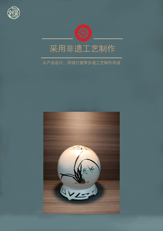 产品是一款内置电池有蓝牙.插卡.NFC等功能,通过镂空.雕刻 .漆艺.浮雕等工艺集传统文化与现代科技于一体的智能椰雕产品。