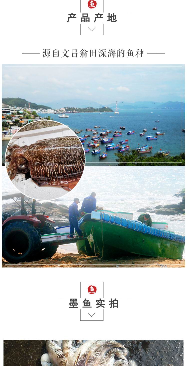 我国沿海各地均有出产,以舟山群岛出产最多。雄的墨鱼背宽有花点,雌的肉鳍发黑,以雄的为佳。墨鱼肉脆嫩,味鲜美。适合制作各种美味。