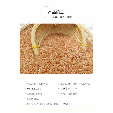 东坡红米其米粒颗粒饱满、色泽红润芳香爽口。饭味清香适口。在历年“海南冬交会”上,众多消费者对东坡红米给予了很高的评价,都认为价格不贵、口感醇香、营养价值高。