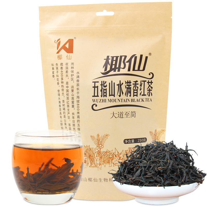 将海南传统制功夫红茶工艺与现代高科技相结合,经过多年的研发,精制出的五指山水满香红茶,条索紧结肥硕,色泽棕褐,妙峰秀丽,汤色红艳明亮,呈琥珀色,滋味醇厚回甜,尤其是其香气独具山野铃兰香,馥郁持久,岩韵突显,叶底红润明亮。