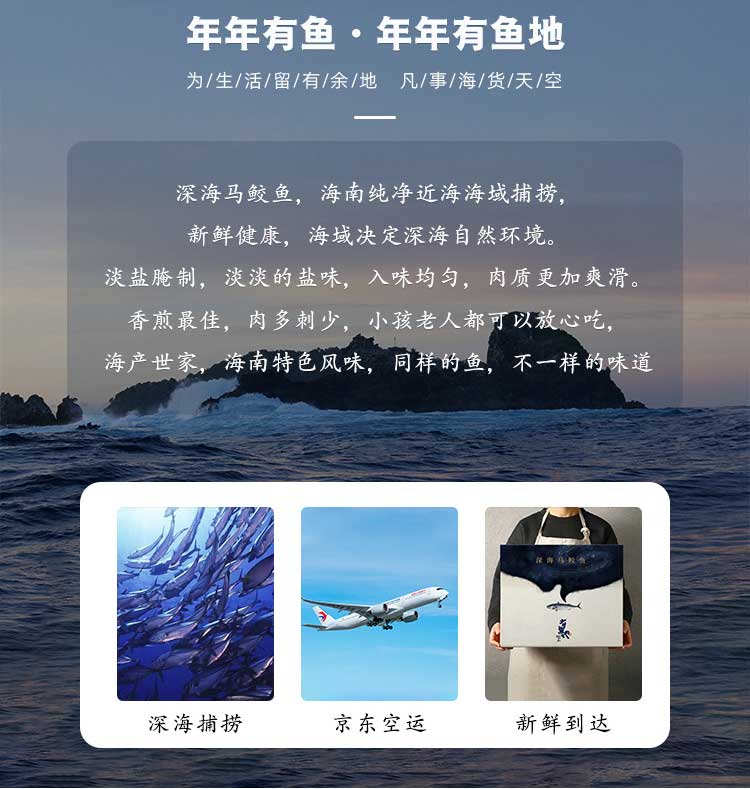 万宁有鱼地深海马鲛鱼-万宁市港北渔村渔业有限公司的扶贫海鲜 订单发货时效:48小时内 一、产品参数 产品名称:有鱼地深海马鲛鱼 产品产地:海南省万宁市 产品保质期:6个月 存放建议:冰箱冷冻储