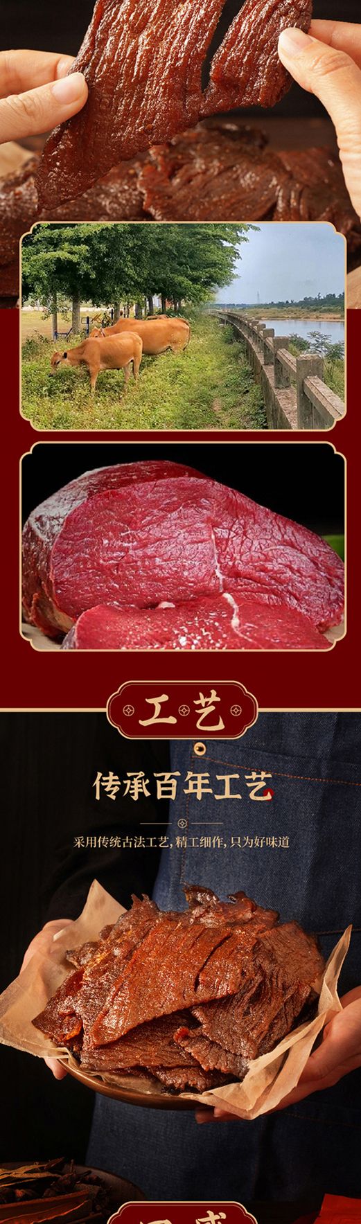 选用瑞溪当地的黄牛后腿肉来制作,经过切片、腌制、暴晒等多种工艺,经过严格品控,制作出来的牛肉干肉纹理清晰可见,保留了肉干的原汁原味,香甜适口,越嚼越香,是家家户户逢年过节上乘的下酒菜,也是送礼首选。