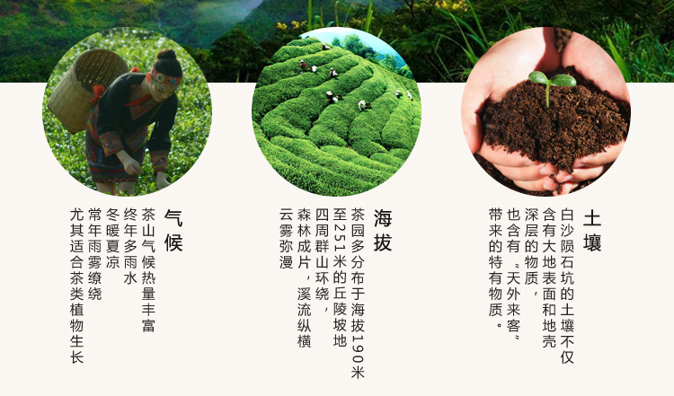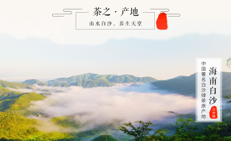 白沙香茗园茶厂绿茶产自海南省白沙黎族自治县,茶园分布在白沙陨石坑周围,这里有热带原始森林,雨量充沛,云雾缭绕,土质肥沃,得天独厚的原生态环境造就了茶叶的好品质,加上标准化的种植和传统制茶工艺,茶叶外形紧结细小,汤色清绿,口感浓厚甘醇,香气持久。