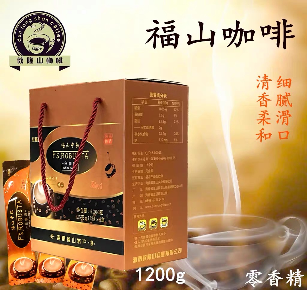 敦隆山 福山咖啡 白咖啡速溶三合一1箱 15克*12包*4盒包邮 罗布斯塔 口感香醇 回味无穷