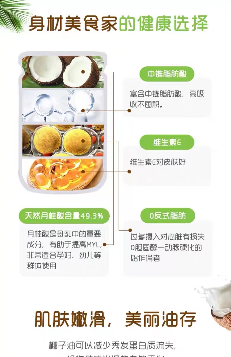 椰仕力初榨椰子油原产地万宁兴隆,地处热带边缘,阳光充足,终年如夏,素有“大温室”的美称;由于地理条件优势,该产区的椰子口感香醇,肉厚多汁,营养丰富,并且通过低于60°C的物理冷压榨生产工艺,能更好地保留椰子油的营养成分,压榨出来的椰子油晶莹剔透,,散发自然椰香,并含丰富的月桂酸和中链脂肪酸,是美食家健康,美味,天然的食用油。