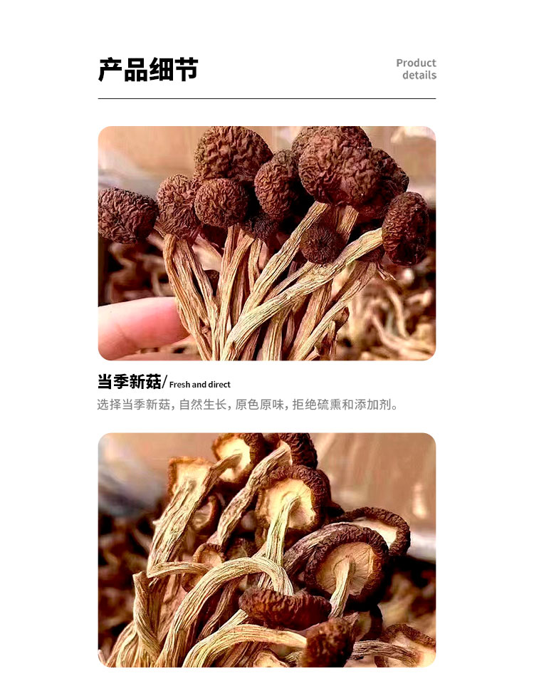 我们相信,健康的食品应该是美味的。因此,我们致力于提供优质的茶树菇干,让您在品味美食的同时,也享受到健康的益处。我们希望通过我们的产品,为您带来一份自然、健康和美味的享受。
