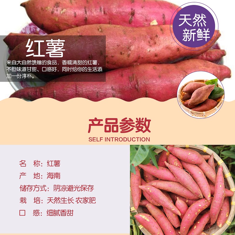 产品有地瓜等热带农产品,专注临高农产品上行,通过销售临高当地农产品及雇佣的型式帮扶贫困户。