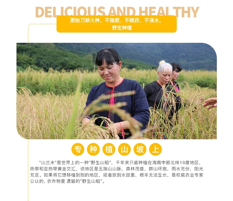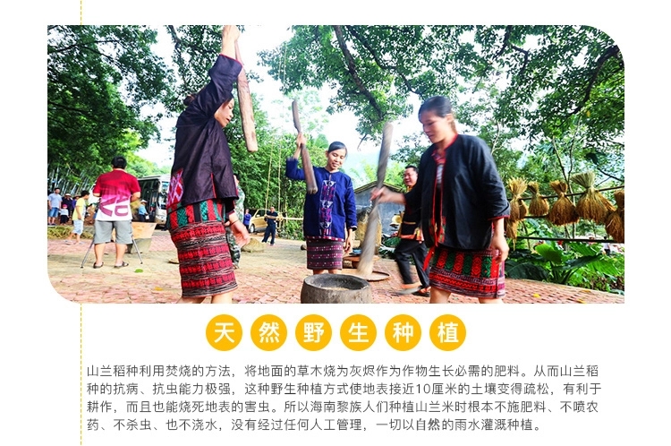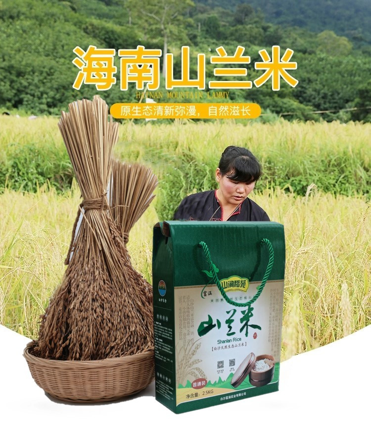 白沙山兰米是黎族山地旱稻,是全世界目前所发现的唯一还延续种植的野生山稻,是黎族人民在 长期的生活实践中筛选出来的适合干旱地带种植的稻种,亩产量只有200斤,非常珍贵。