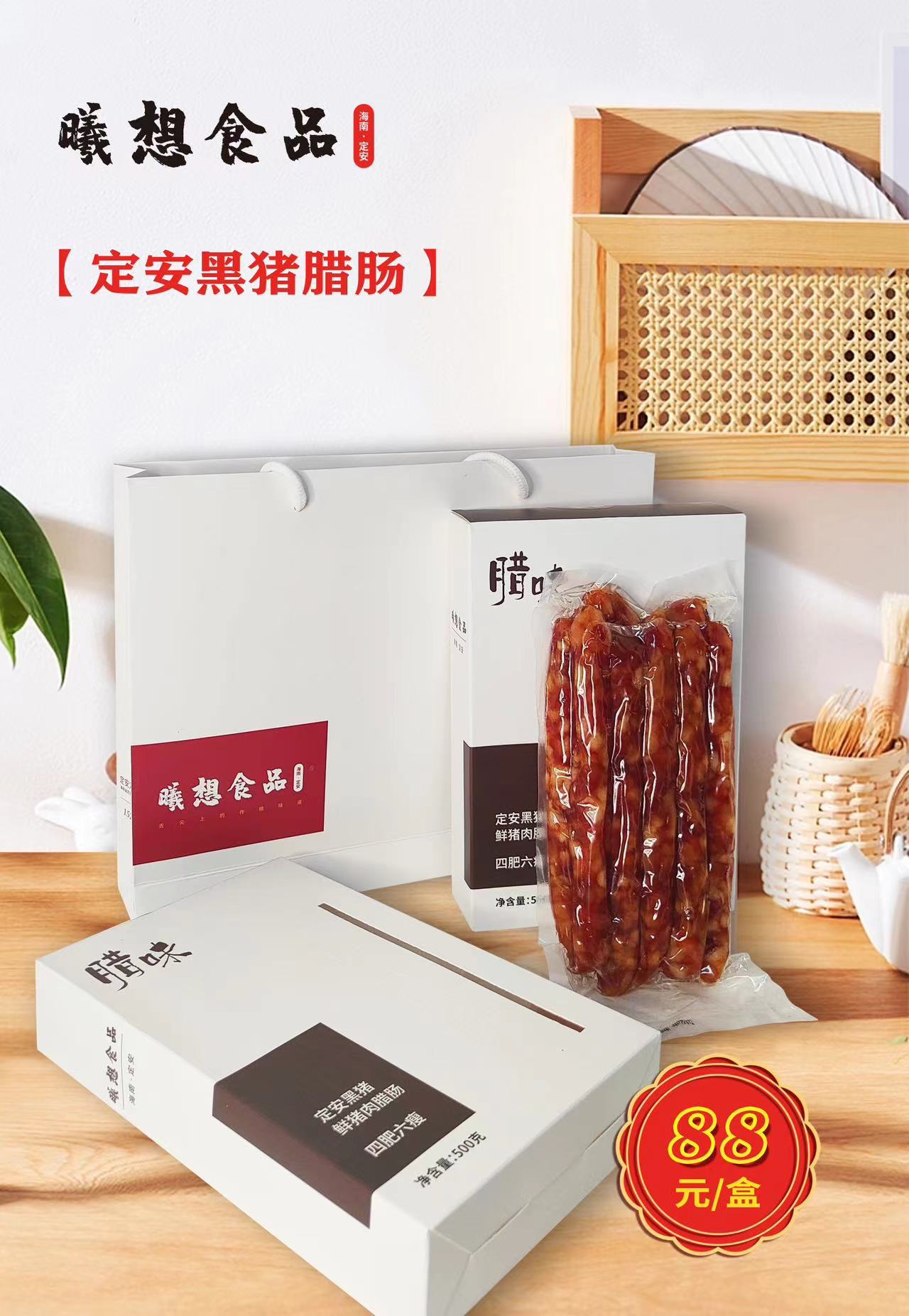 定安黑猪腊肠,腊肠最主要的食材就是猪肉,猪肉品质决定价格,选我们品质保证。如果量大要提前预定给时间做,做一批腊肠需要4天,96个小时才能出炉,一斤肉只能做6两腊肠