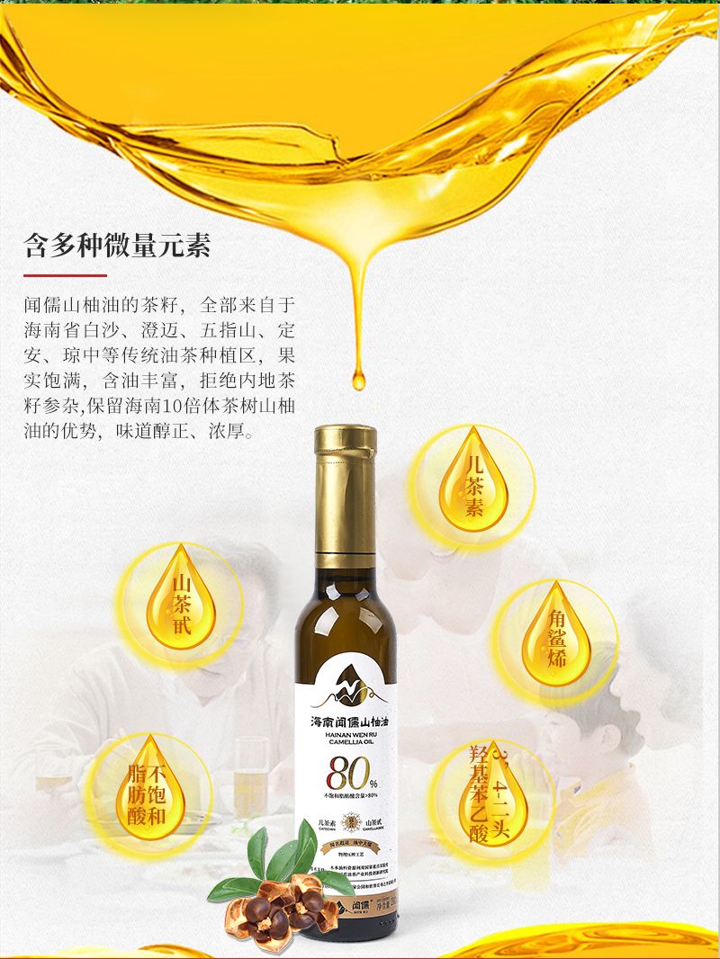 品牌小故事-我从小在海南省澄迈县文儒镇外婆家长大,记得外婆家南边山坡上有一大片油茶林,那里绿树成荫、溪水环绕。我和镇里的孩子们最爱去那片油茶林玩耍了,小孩子生性活泼好动,玩耍当中磕磕碰碰也无可避免。有一次我回到家时,外婆发现我头上肿了一个大包,腿上还破了块皮,就赶紧拿来山柚油(生长在海南省的油茶树山茶果榨的油)给我抹上,我好奇地问外婆,山柚油不是用来吃的吗?怎么能用来治伤痛呢?外婆说:“山柚油不光能吃,油饼粕还能用于洗头,山茶果全身都是宝呢!