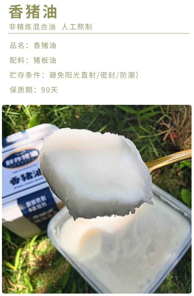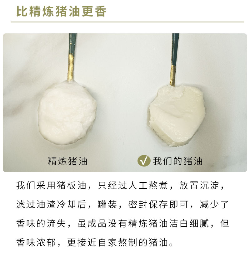 香猪油,手工熬制,配料只有猪板油,没有任何添加剂,简简单单,用来炒菜拌饭拌面都很香,妥妥厨房调味C位!