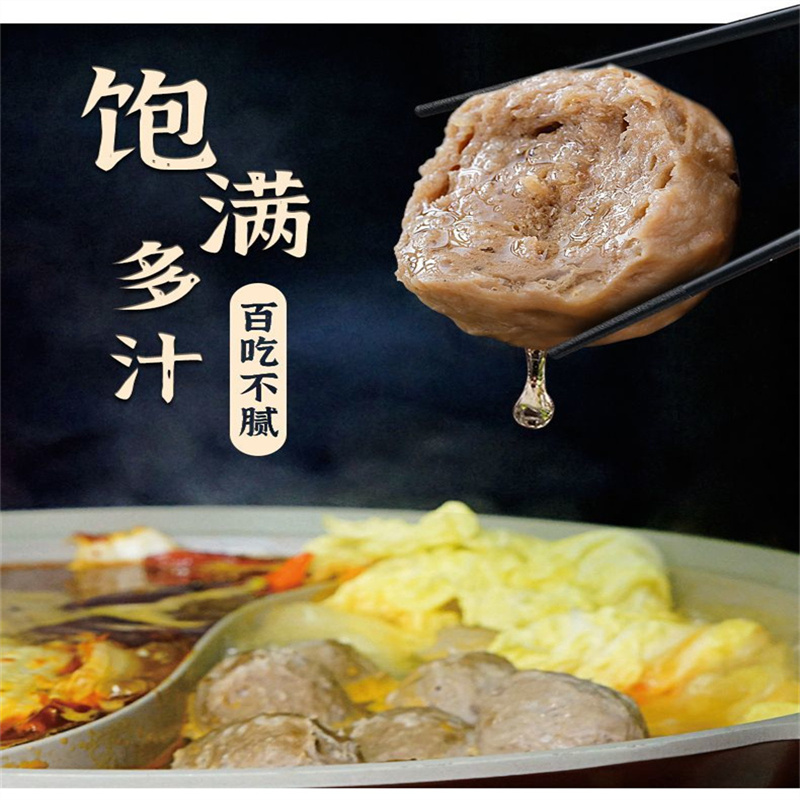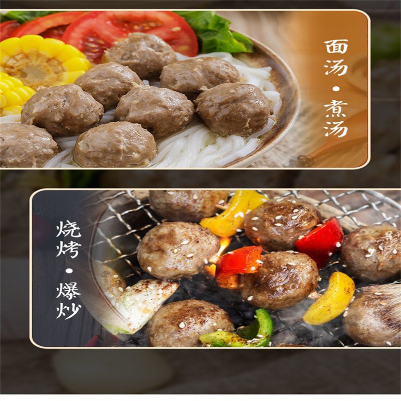牛肉丸,其美味源自于精选的优质牛肉,经过精心锤打与调味,成就了独一无二的口感与风味。外皮微弹,内里肉质紧实而多汁,每一口都能感受到牛肉的醇厚与鲜美。咀嚼间,牛肉的香气在口腔中四溢,带着淡淡的肉香与调味料的提味,让人欲罢不能。无论是单独品尝,还是作为火锅、汤品中的配料,牛肉丸都能以其独特的口感与美味,成为餐桌上的亮点。