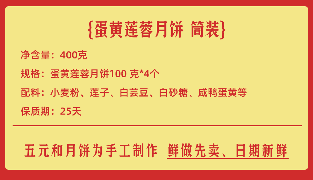 100克蛋黄莲蓉月饼*4个