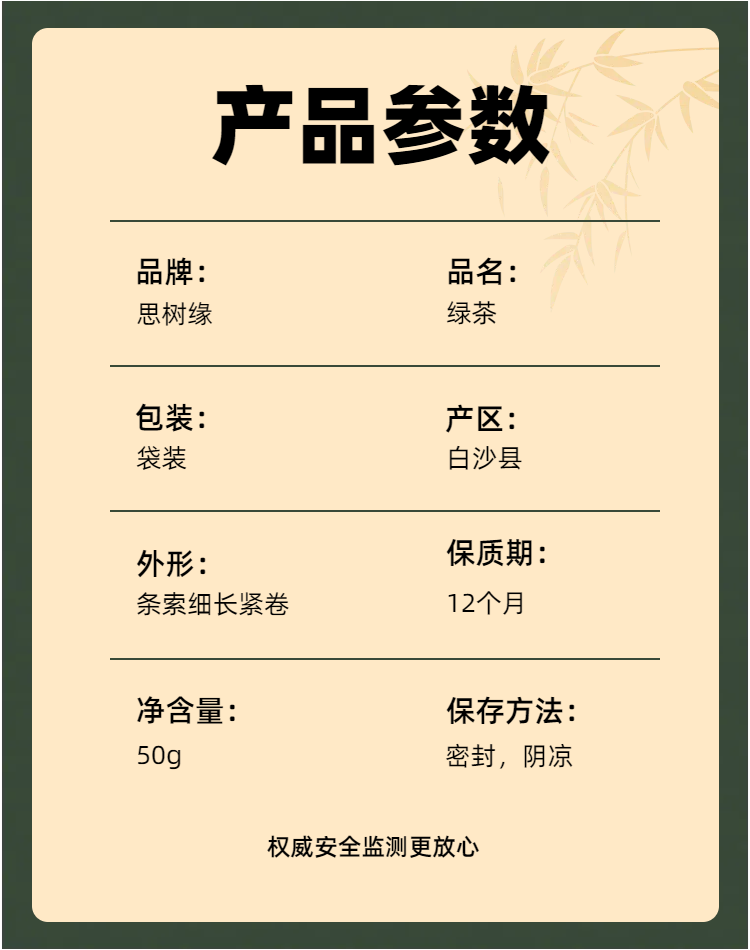 本产品原材料(茶青)全部采摘于白沙陨石坑,纯天然无污染,承诺不打农业放心喝。