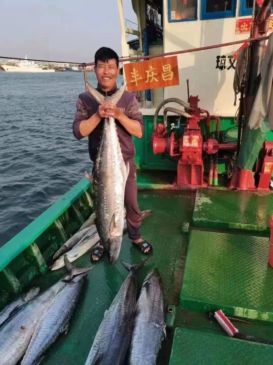 冯学琼,海南疍家渔民,满16岁就学会捕鱼,在传承爷爷、父亲的传统捕鱼技艺上,进行大胆的改良创新,以拉网+海钓的方式海捕文昌七洲列岛水域的马鲛鱼。观天文、辩潮水、看鱼群,已是船长的冯学琼娴熟驾驭自家渔船独立海上作业。