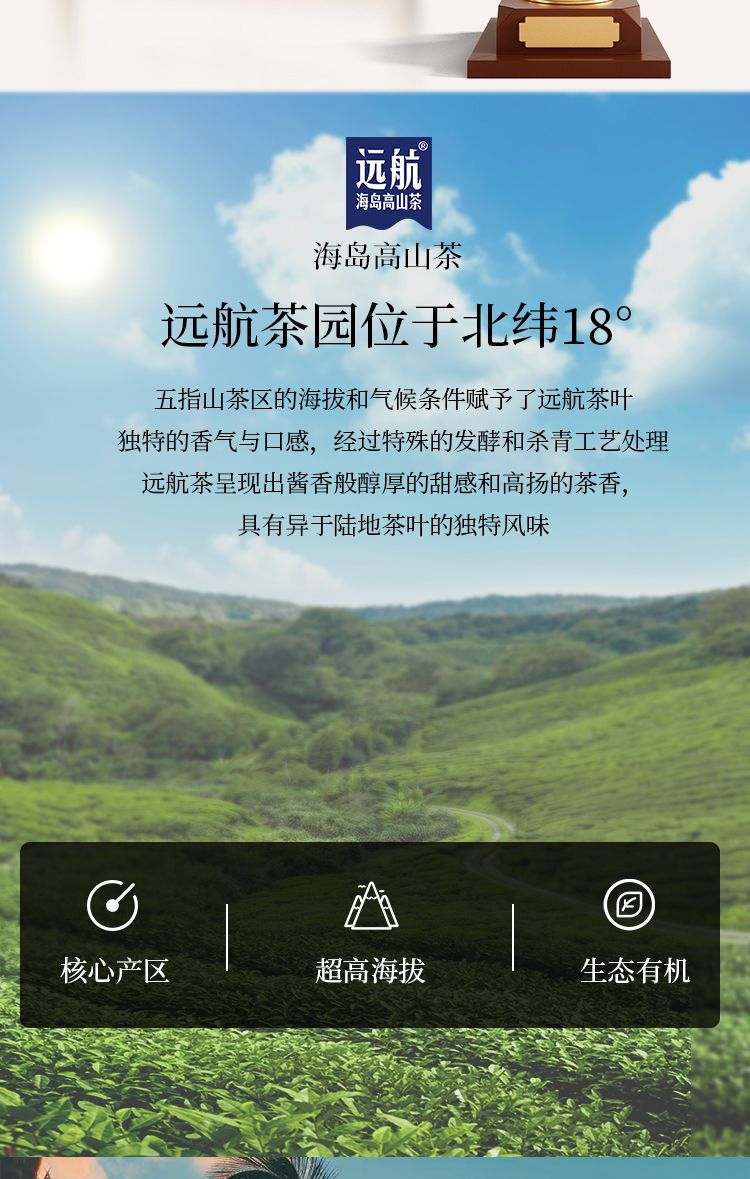 位于定安县黄竹镇的南海茶场,曾是“新中国五大茶场”之一,生产规模与目前年利润超过亿元的云南勐海茶厂曾在一个水平线上,年均出口量5000多吨。站在定安县黄竹镇南海茶场开阔葱绿的茶园中,抚摸着巴掌大小的茶树嫩叶,中国茶叶学会原理事李晓宁先生有些伤感,他说:已故的中国茶界泰斗吴觉农先生十分关心海南茶叶产业的发展,他认为海南是世界上最好的大叶茶产地之一。这里自50年代起就出产“远航”牌红茶,远销世界各地,为新中国换取了弥足珍贵的外汇。据说“远航”牌红茶的品牌还是周总理亲自定名的,他希望中国茶叶能在国际市场上占有一席之地。