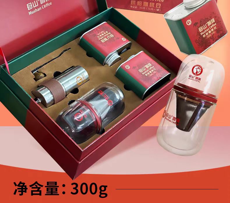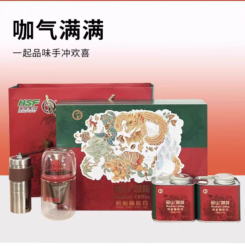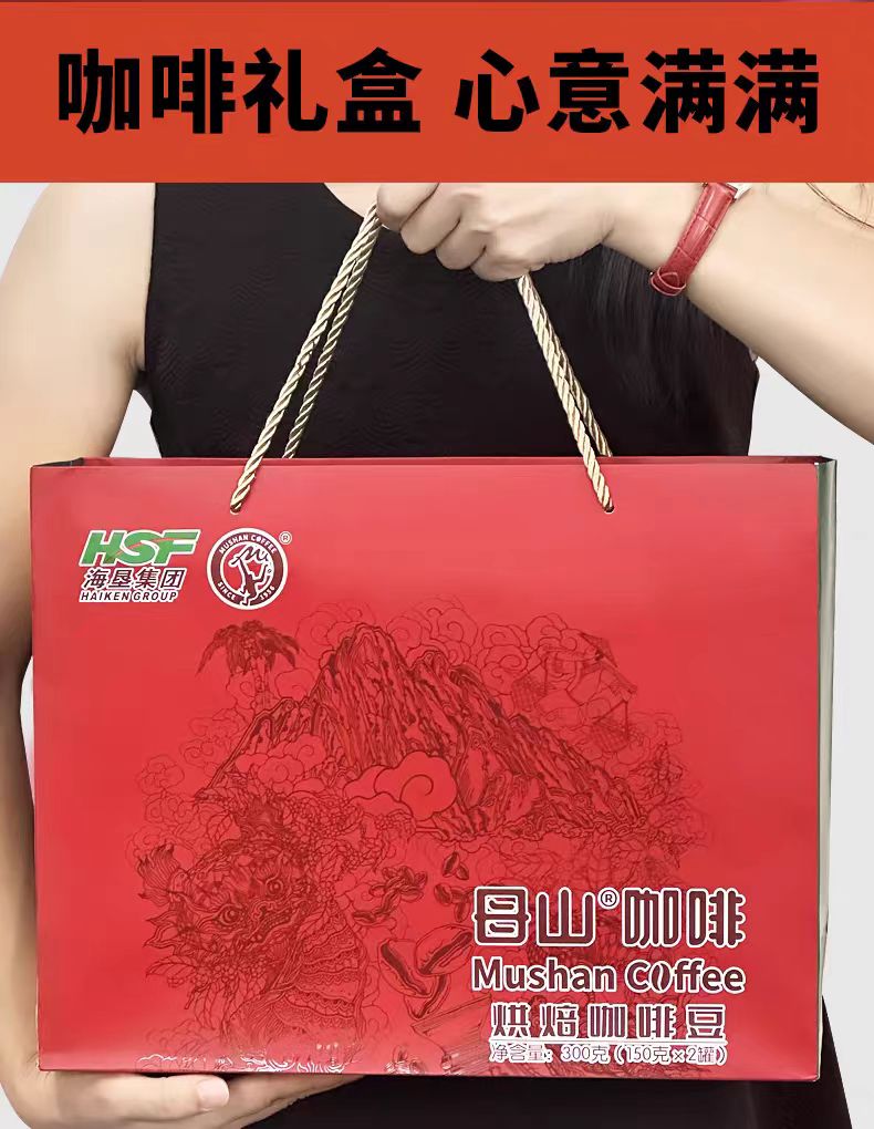 「海垦」买三送一 海垦母山300克中浅烘咖啡豆 精品礼盒