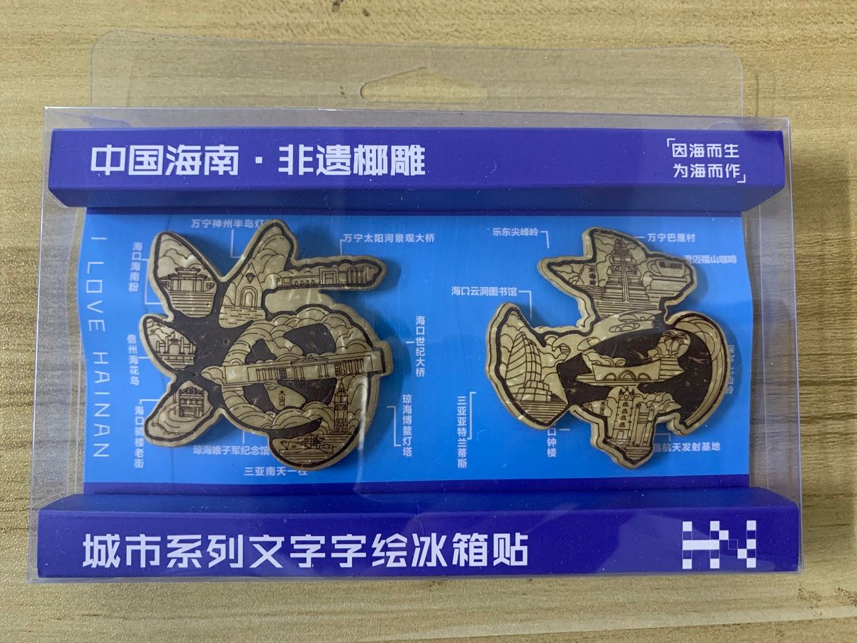 椰雕工艺品样式新颖,造型古朴,画面雅致,质地轻巧,融观赏性与实用性于一体,具有浓郁的海南风格。