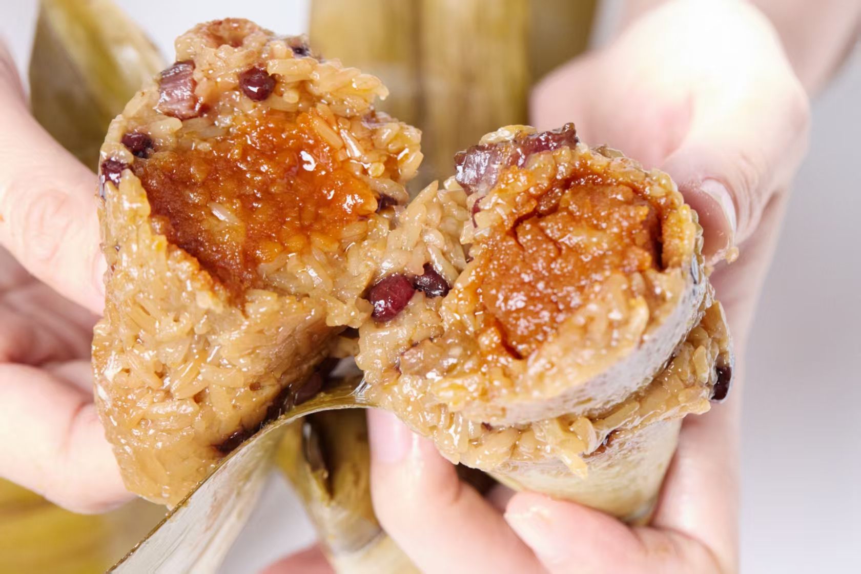 "德可福"东方黑猪肉红豆蛋黄粽子,主要采用海南黑猪肉,加入红豆及咸蛋黄,以及上等的泰国糯米;并采摘东方山区或海边野菠萝叶子进行包蒸制作成四角传统粽子。同时配以黄金比例辅料,经过特独特的传统工艺以及柴火蒸煮而熟,具有浓香软绵,野菠萝叶子独特的粽香味,食而不腻,令人回味无穷等特