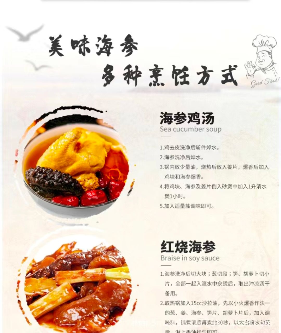 贮存条件:因黄肉参在加工过程中未添加防腐剂,且属于高蛋白食物,常温保存容易变质,收到后需要冷冻储存,零下-18°C!冷冻保存!