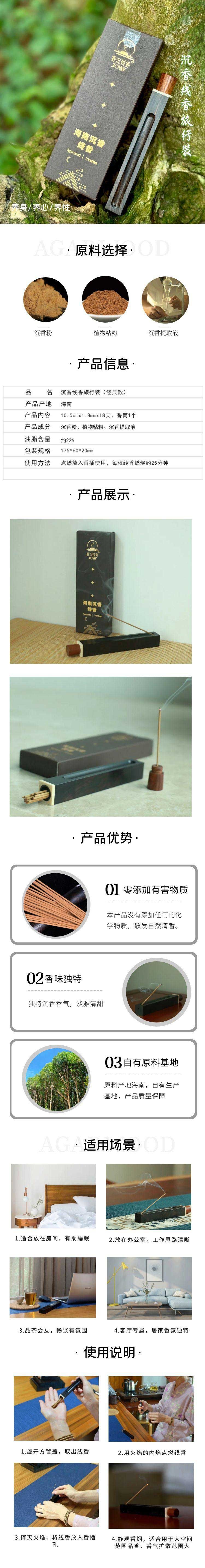 甄选油脂含量在24%左右的沉香粉、植物粘粉、沉香提取液制作而成,香品精细,香气清甜淡雅,裨益身心。方管香筒采用紫光檀黑檀木制作,既可存放线香,又可作为香座使用,香灰落入凹槽,保持台面整洁,外观质朴,方便出差、旅行、外出,随处可熏香,随处营造属于自己的香气,即可助眠,又可净化新环境,是修生养性的香薰佳品。