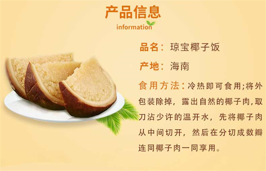 爱心商城 > 活禽肉蛋 > 「海口」海南特产原味椰子饭560g即食新鲜椰香方便米饭糯米代餐食品