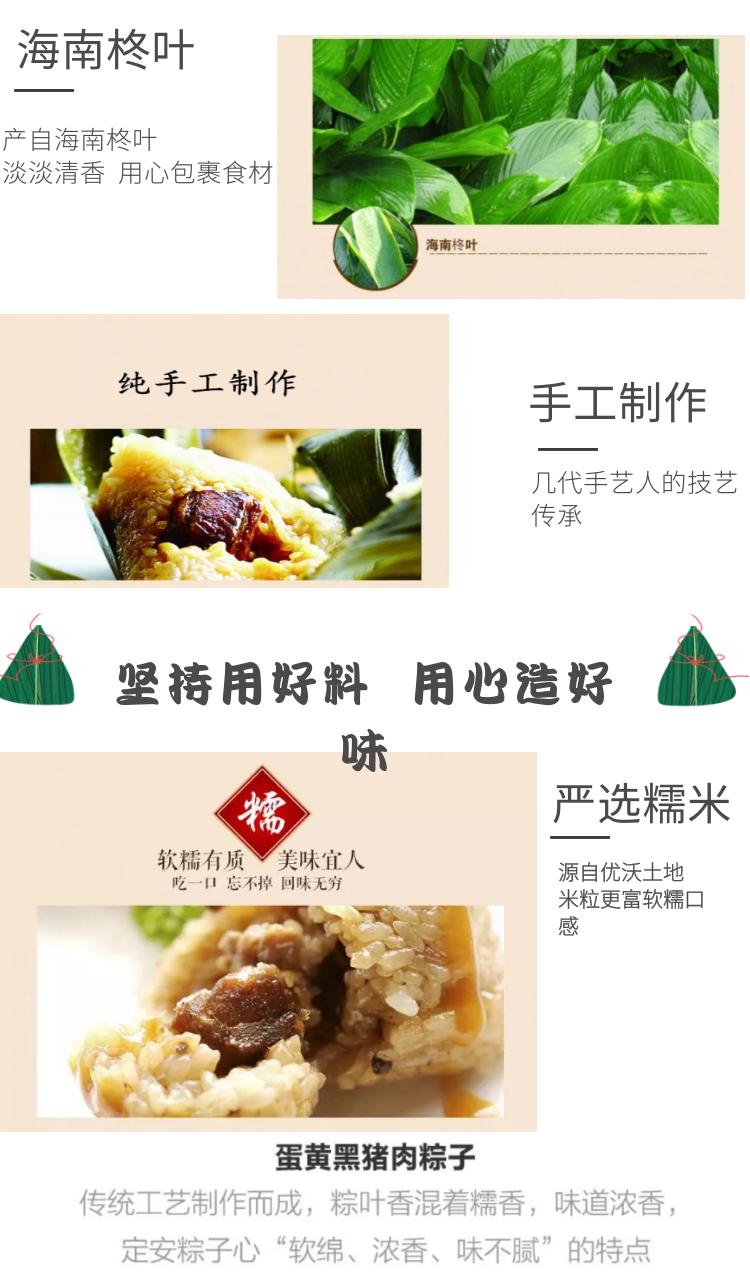 爱心商城 > 活禽肉蛋 > 「海口」琼宝海南定安粽子 黑猪肉蛋黄糯米粽 传统咸粽 端午大粽子248g/枚