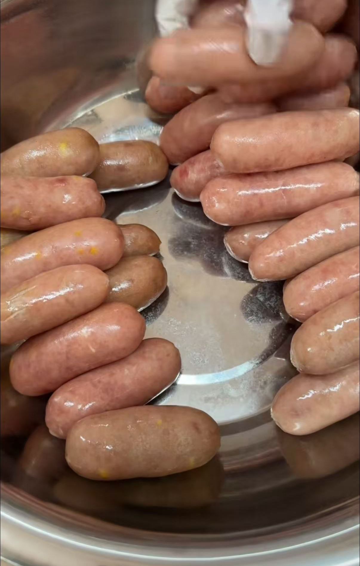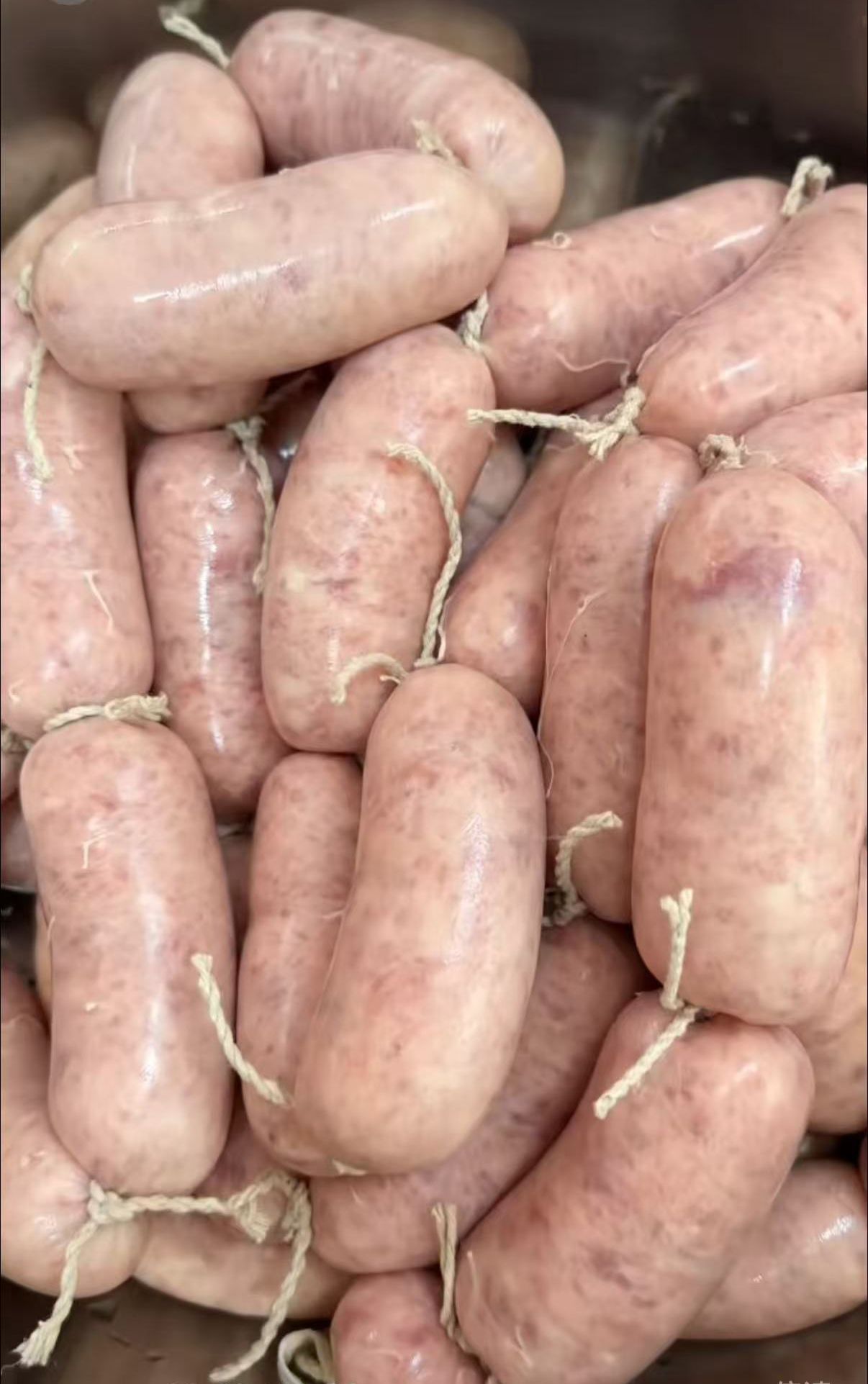 今年研发出来烤肠,不加任何防腐剂、不加任何淀粉,鲜猪肉灌,有三种口味、原味、玉米、黑椒,一吃就知道了
