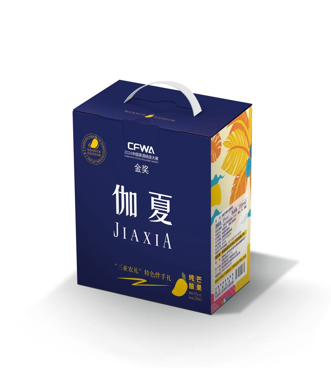 “伽夏芒果醉”是一款融合传统工艺与现代技术的芒果发酵果酒,以三亚优质芒果为原料,精选当地新鲜芒果,沿用传统工艺, 不加糖、不加色素、没有防腐剂, 真正做到零添加。通过创新深加工技术保留果香与营养,既具有热带水果风味,又有海南本土特色,酒精度数分别为8°、12°,口感软糯香甜,低度易饮,适合佐餐,加冰块饮用风味更佳 ,无论是作为日常小酌还是搭配美食都十分适宜。