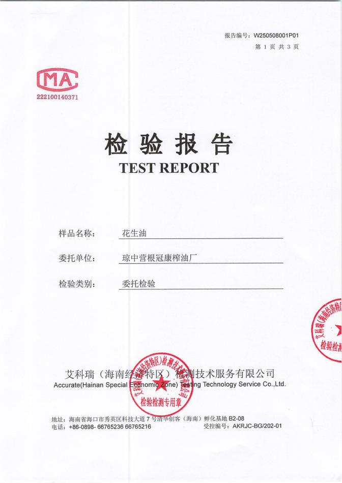 该产品以琼中本地小种花生为原料经过悉心筛选后,通过智能化生产线压榨而成,无添加,健康,每年都做检测,合格上市,有多种规格,适合煎炒烹炸等各种烹饪方式。