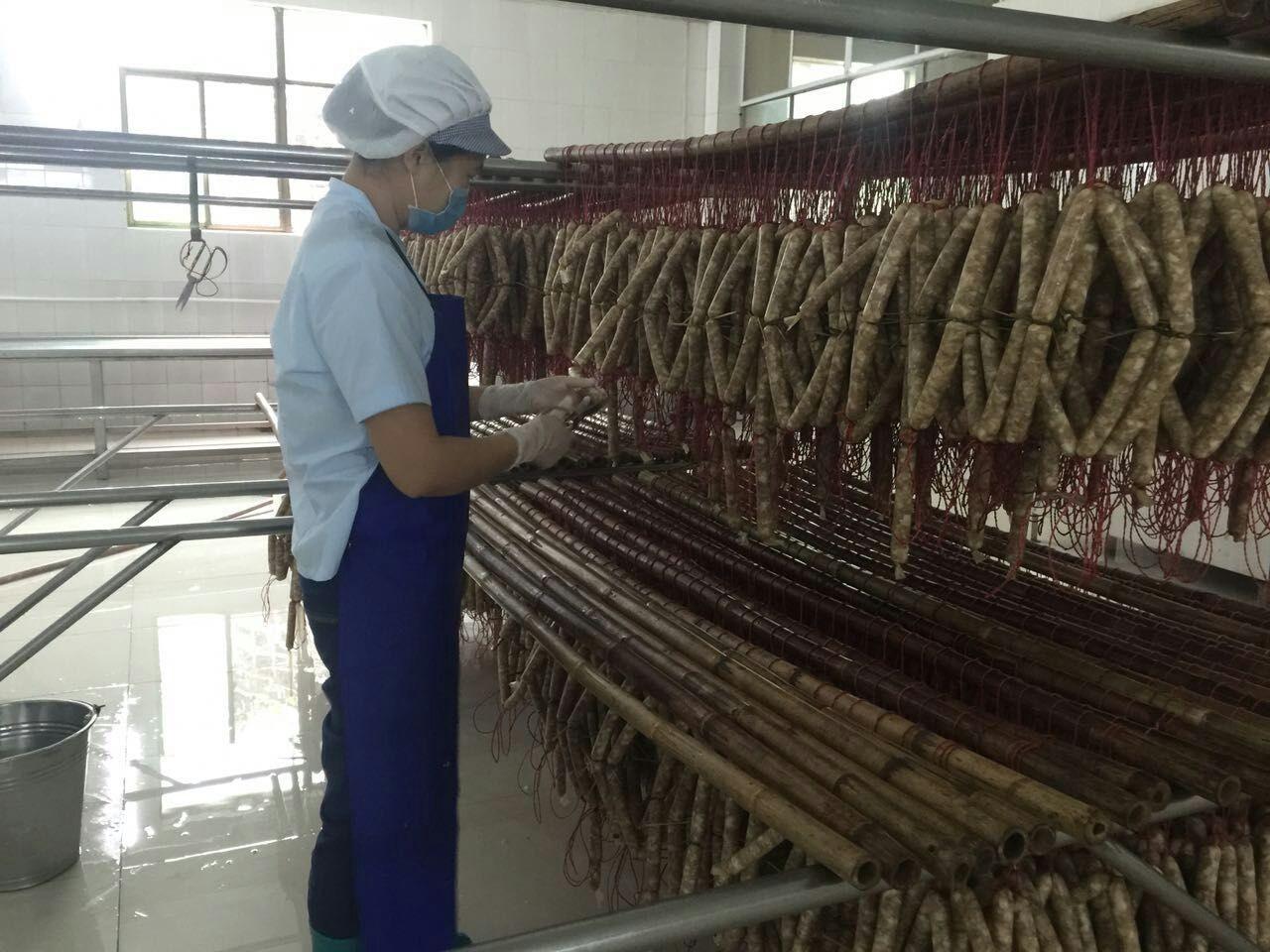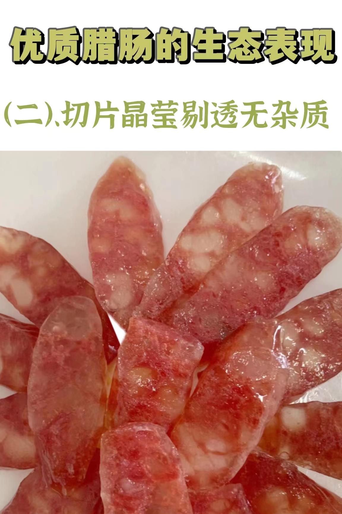 佳奋鲜肉腊肠选用海南新鲜黑猪猪肉为原料,不含鸡肉杂肉、不含冷链猪肉、不含大豆蛋白组织,不含红曲红甜菜红色素香精,经传统广式腊肠工艺配方,工匠精神手工绑扎精制而成,腊肠切面紧凑,无杂质,肥瘦鲜明,肉香浓郁,肥而不腻、口感香醇、肉香浓郁、品质上乘。