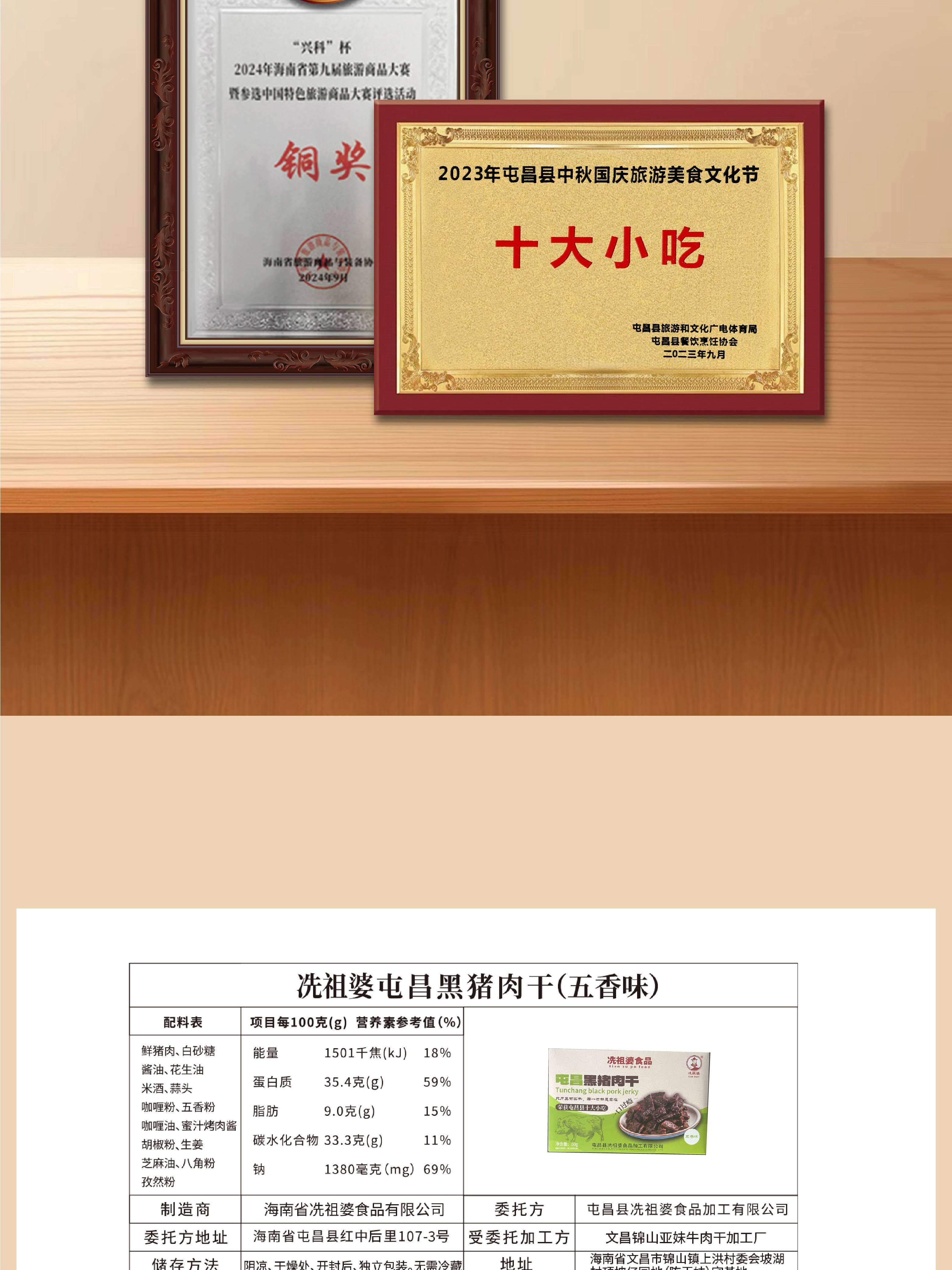 「海口」冼祖婆屯昌黑猪肉干礼盒海南特产零食肉脯休闲小吃