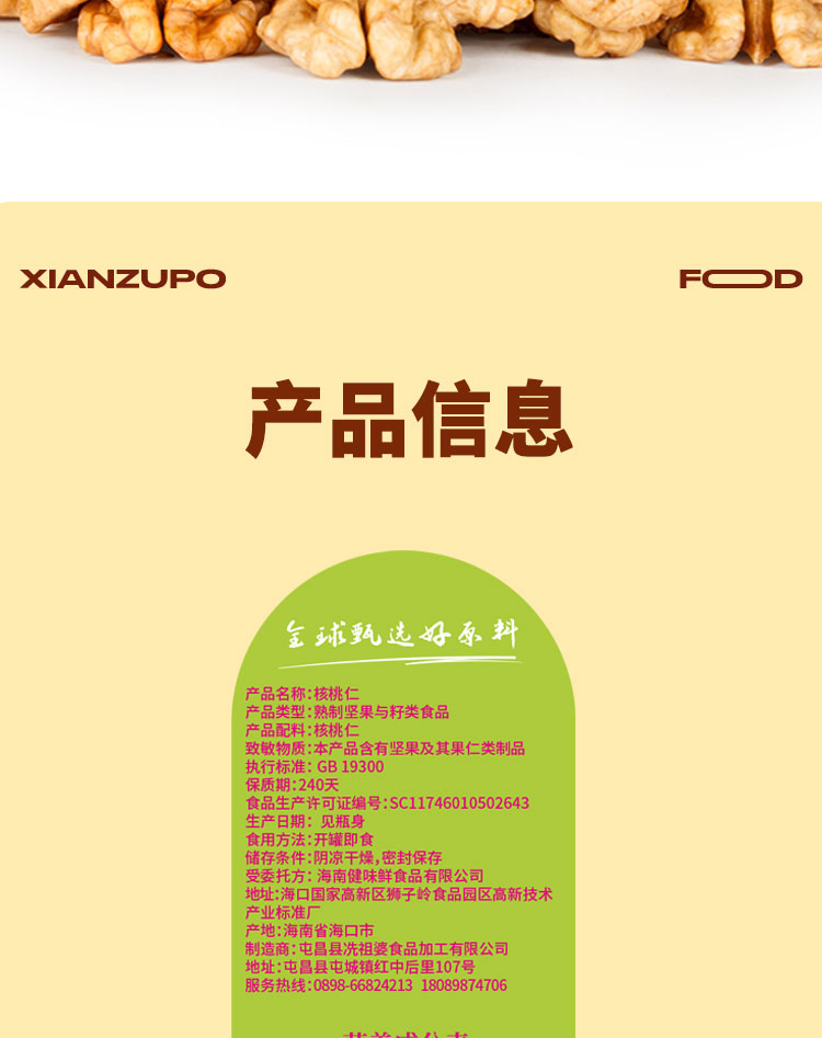 甄选优质核桃原料,人工剥取完整果仁,保留自然原香。每一颗都饱满大粒,轻咬下去酥脆醇香,不涩不腻,越嚼越有滋味。 富含蛋白质、不饱和脂肪酸与多种微量元素,是日常补充营养的天然选择。210g 密封罐装设计,锁鲜防潮,无论是作为早餐搭配燕麦、办公时的能量小食,还是家庭分享的健康零食都十分合适。 作为海南特色伴手礼,也能让亲友品尝到这份天然又健康的风味。