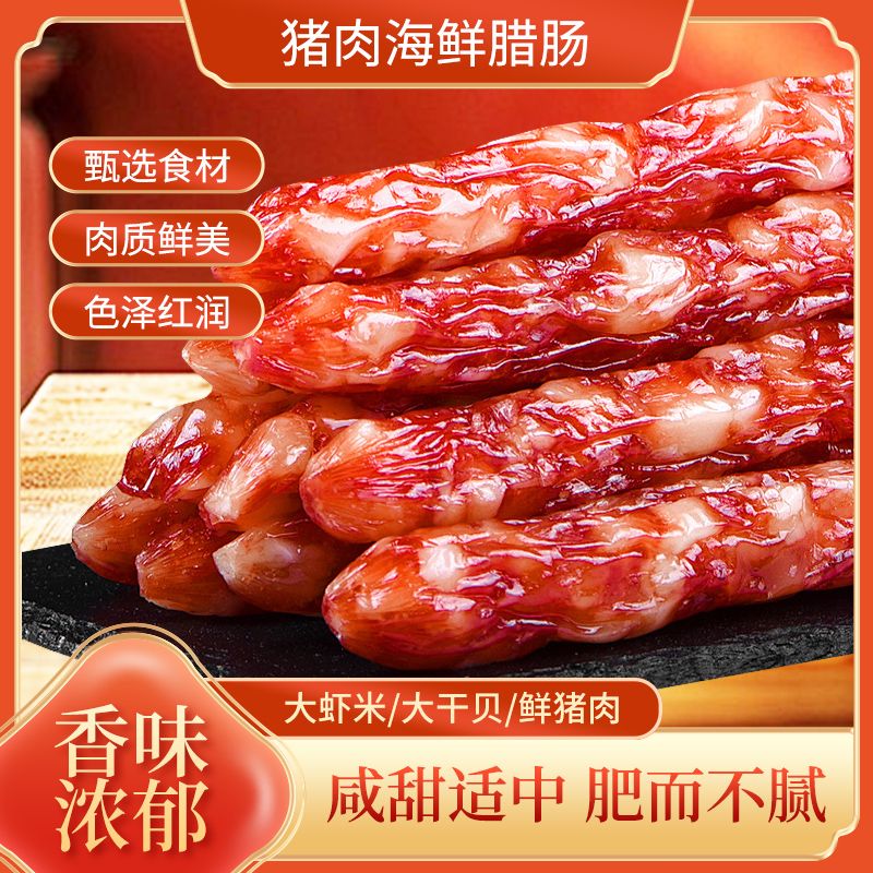「临高」虾米瑶柱腊肠甄选黑猪肉野生海鲜制作的海鲜腊肠