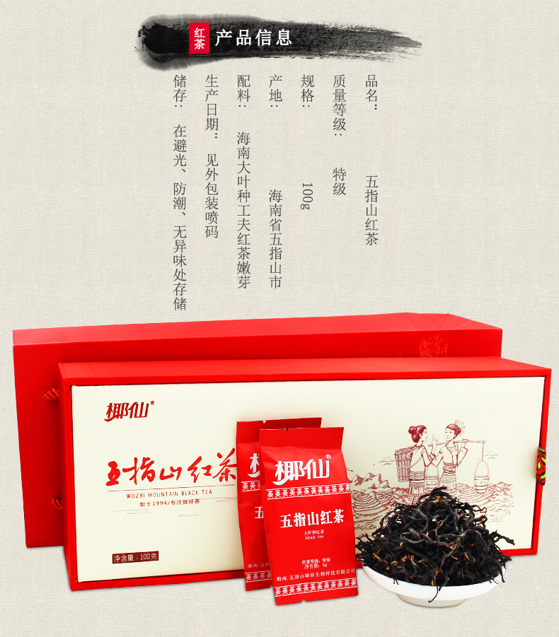 「五指山」水满香红茶礼盒100g(海南老字号)-五指山椰仙生物科技有限公司的帮扶产品