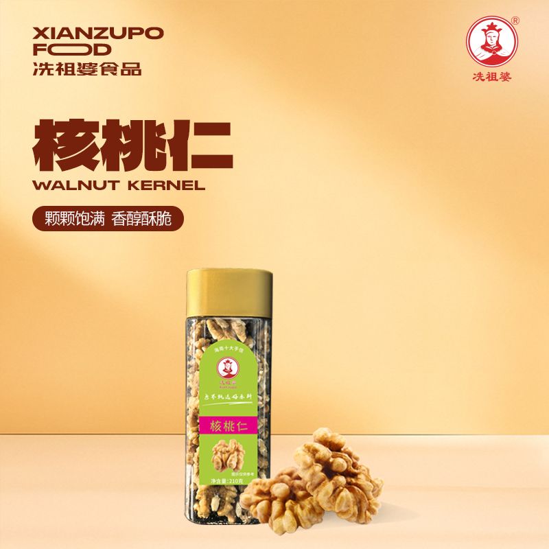 「海口」冼祖婆海南核桃仁罐装坚果炒货干货210g