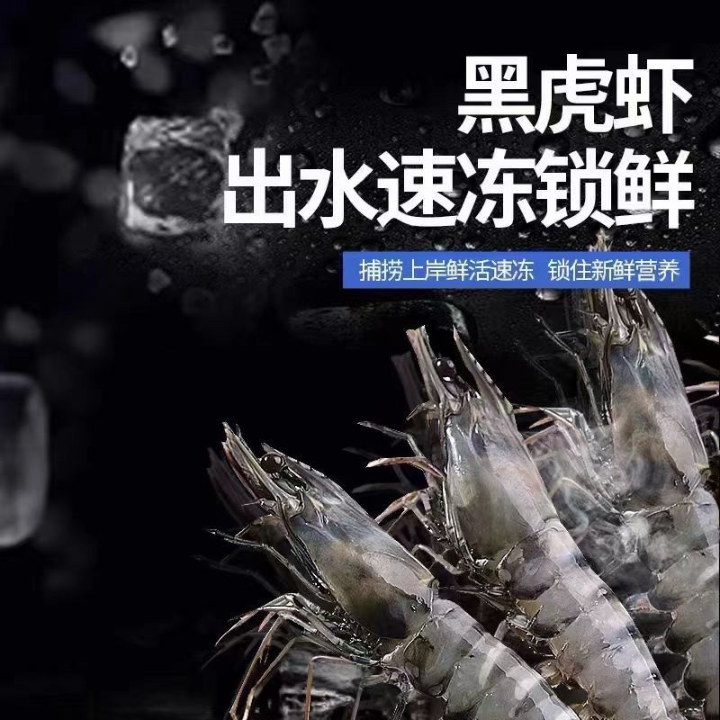 「琼海」海南野生黑虎虾 大虎虾鲜活现捕活冻老虎虾九节虾海鲜大虾海鲜