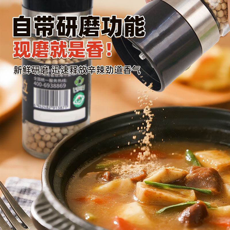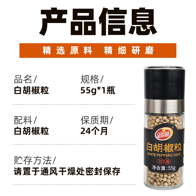 「海口」品香园海南正宗白胡椒粒55g带研磨器西餐烧烤煲汤炒菜调味料