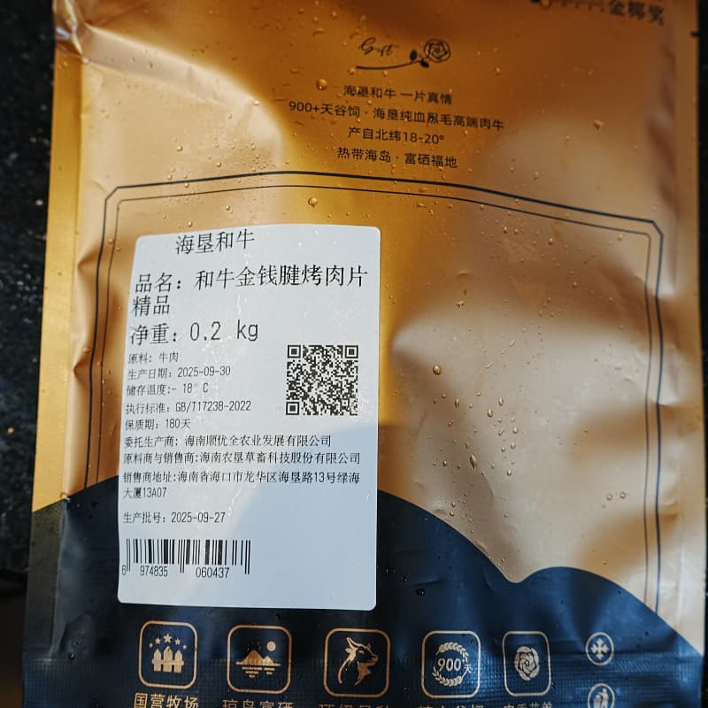 「海口」和牛金钱腱烤肉片精品-200g装-海垦和牛